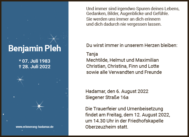 geboren am 7. Juli 1983 in Hadamar gestorben am 28. Juli 2022 in Limburg