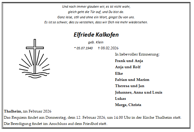 Es ist so schwer, dies zu verstehen, dass wir Dich nie mehr wiedersehen.