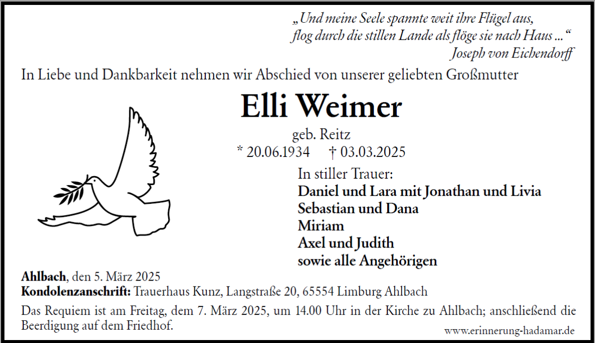 in diesen Tagen fühlen wir mit Ihnen und wünschen Ihnen von Herzen, dass Sie aus den glücklichen Erinnerungen Kraft schöpfen, um positiv in die Zukunft zu gehen. Diese Gedenkseite möge Ihnen dabei helfen, Ihre Trauer zu teilen und das Andenken gemeinsam wachzuhalten.