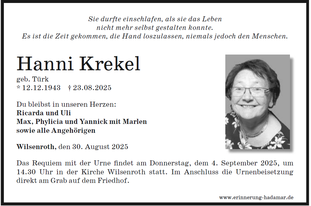 geboren am 12. Dezember 1943 in Wilsenroth gestorben am 23. August 2025 in Limburg