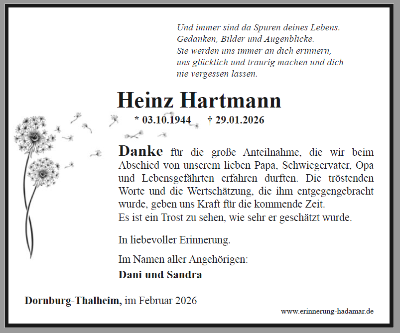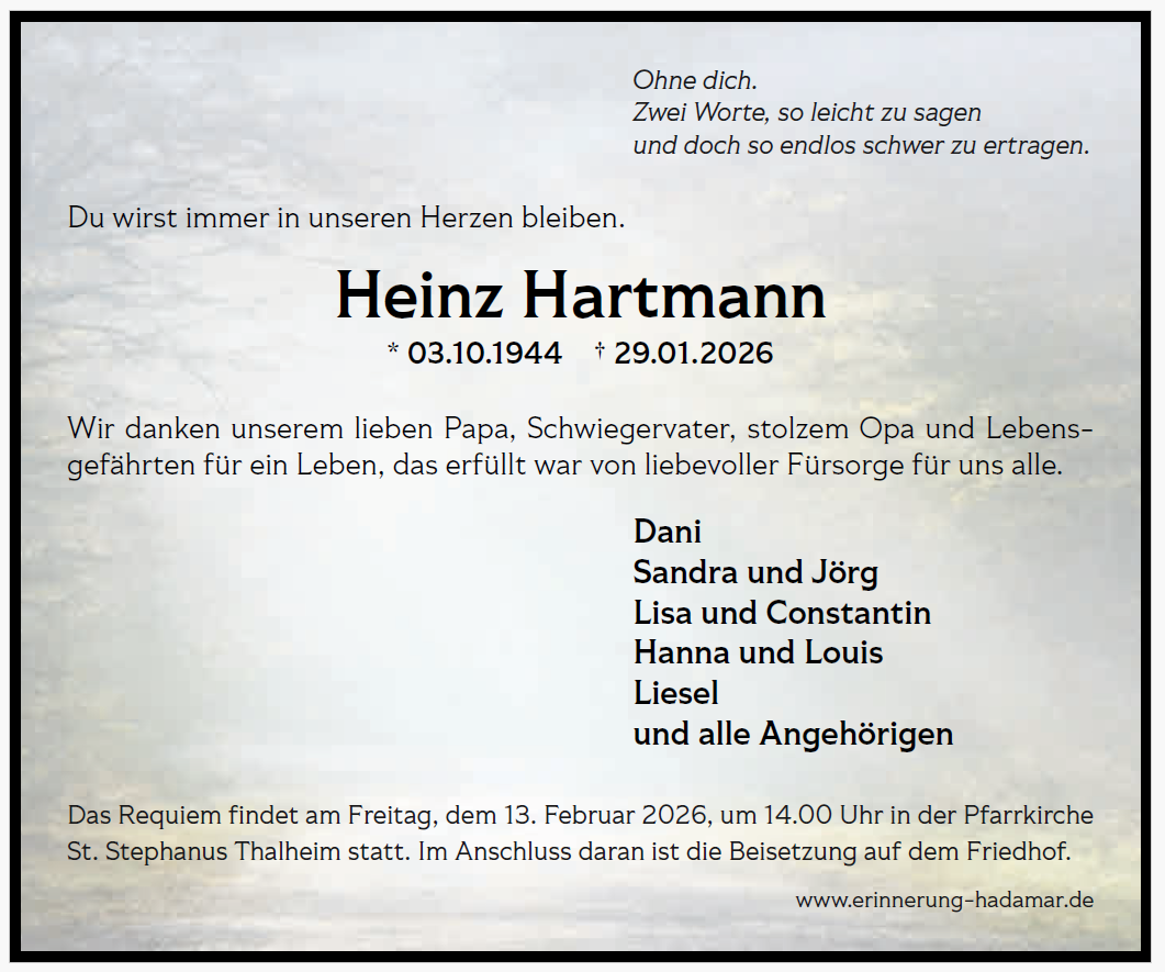 Herzliche Anteilnahme.Lutz und Jutta Müller