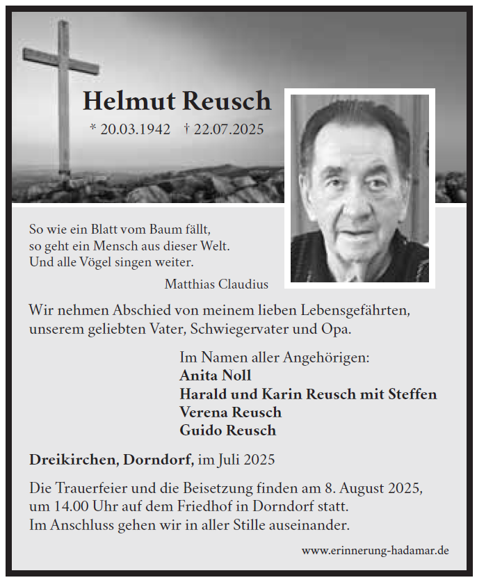 Wir möchten unser Beileid, zum Tode eures Vaters aussprechen
