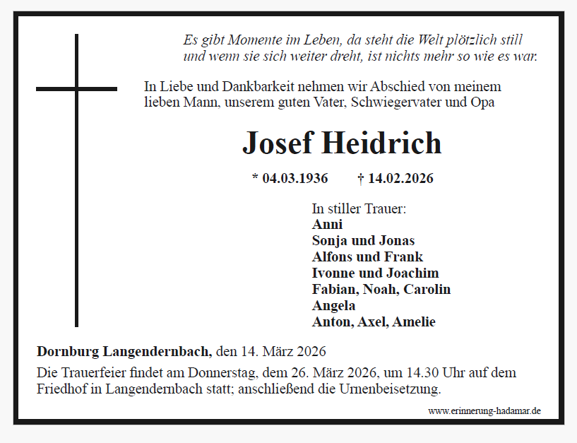 geboren am 4. März 1936 in Langendernbach gestorben am 14. Februar 2026 in Langendernbach
