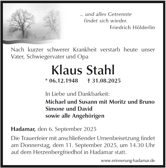 Lesen Sie hier die Anzeigen und Trauerpost!