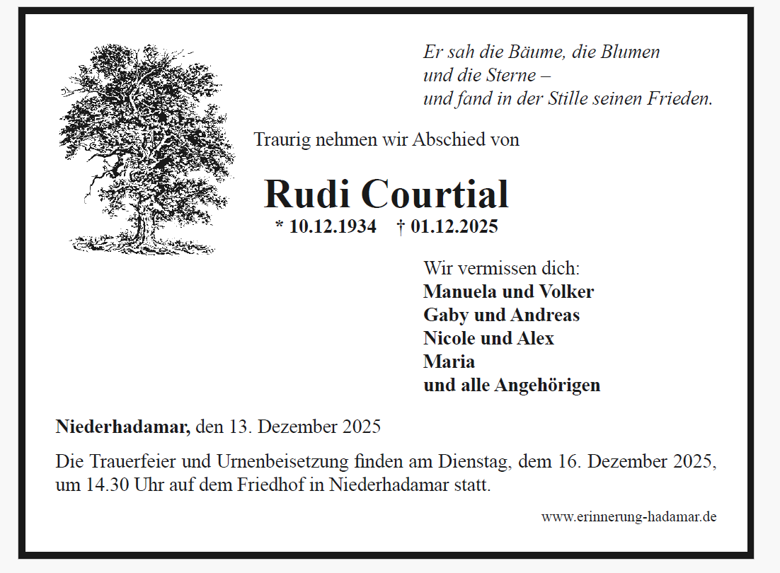 geboren am 10. Dezember 1934 in Limburg gestorben am 1. Dezember 2025 in Niederhadamar