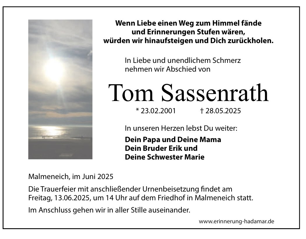 wir sind zutiefst erschüttert und berührt von der Nachricht über Toms Tod. Unser herzliches Beileid!