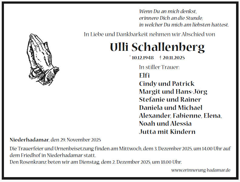 Mit großer Trauer nimmt der Vorstand des Traktorclub Ackerkralle Abschied von Ulli Schallenberg. Ulli und seine Familie haben unseren Verein bei vielen Veranstaltungen unterstützt und geholfen. Wie wünschen der Familie Schallenberg viel Kraft und Trost in dieser schweren Zeit.