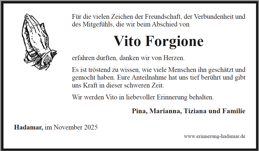 Du lebst weiter in deinen Kindern, in den Kindern deiner Kinder. Sie leben durch deine Gesten, welche du in deine Kinder gesät hast weiter. Dieser Gedanke spendet mir Trost. Somit weiß ich, dass auch wenn du physisch nicht mehr da bist, immer unter uns weilen wirst.