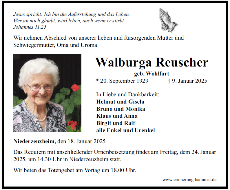 Lesen Sie hier die Anzeigen und Trauerpost!